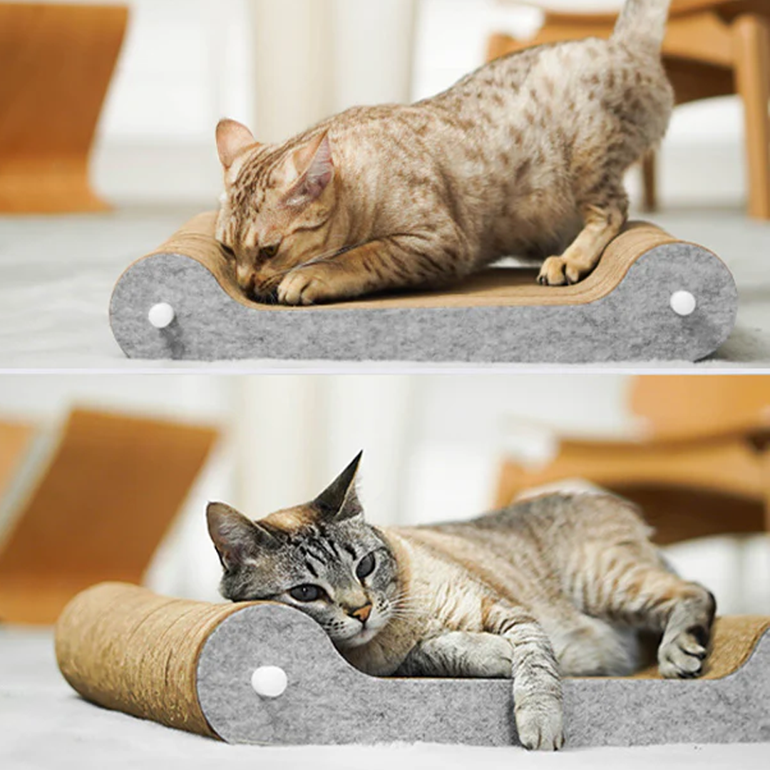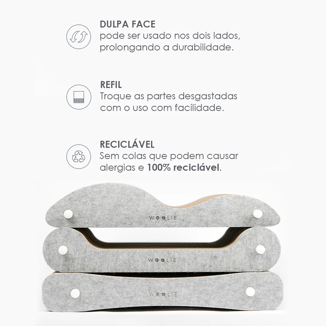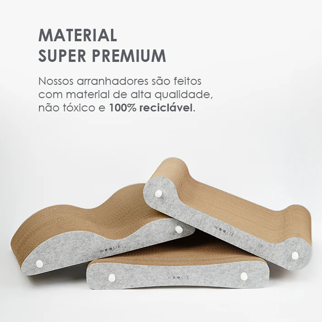 Arranhador para ajudar seu gatinho a desgastar as unhas, se alongar e se desestressar - além de proteger os seus moveis!Os dois lados podem ser usados como arranhador, trazendo maior durabilidade do produto.Lounge: além de arranhador, serve como uma caminha e um lindo lounge, amado pelos gatinhos.Material SUPER PREMIUM:- Papelão KRAFT, com qualidade e coloração diferenciada dos demais arranhadores.- Laterais em FELTRO: traz sofisticação, elegância e combina com sua casa.- Sem cola entre as placas de papelão, reduzindo riscos de alergia.100% reciclável. Feito à mão, no Brasil.