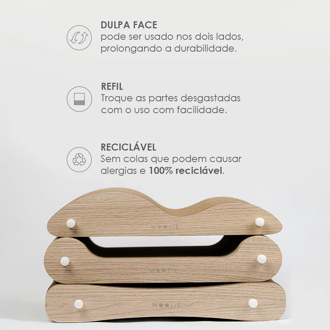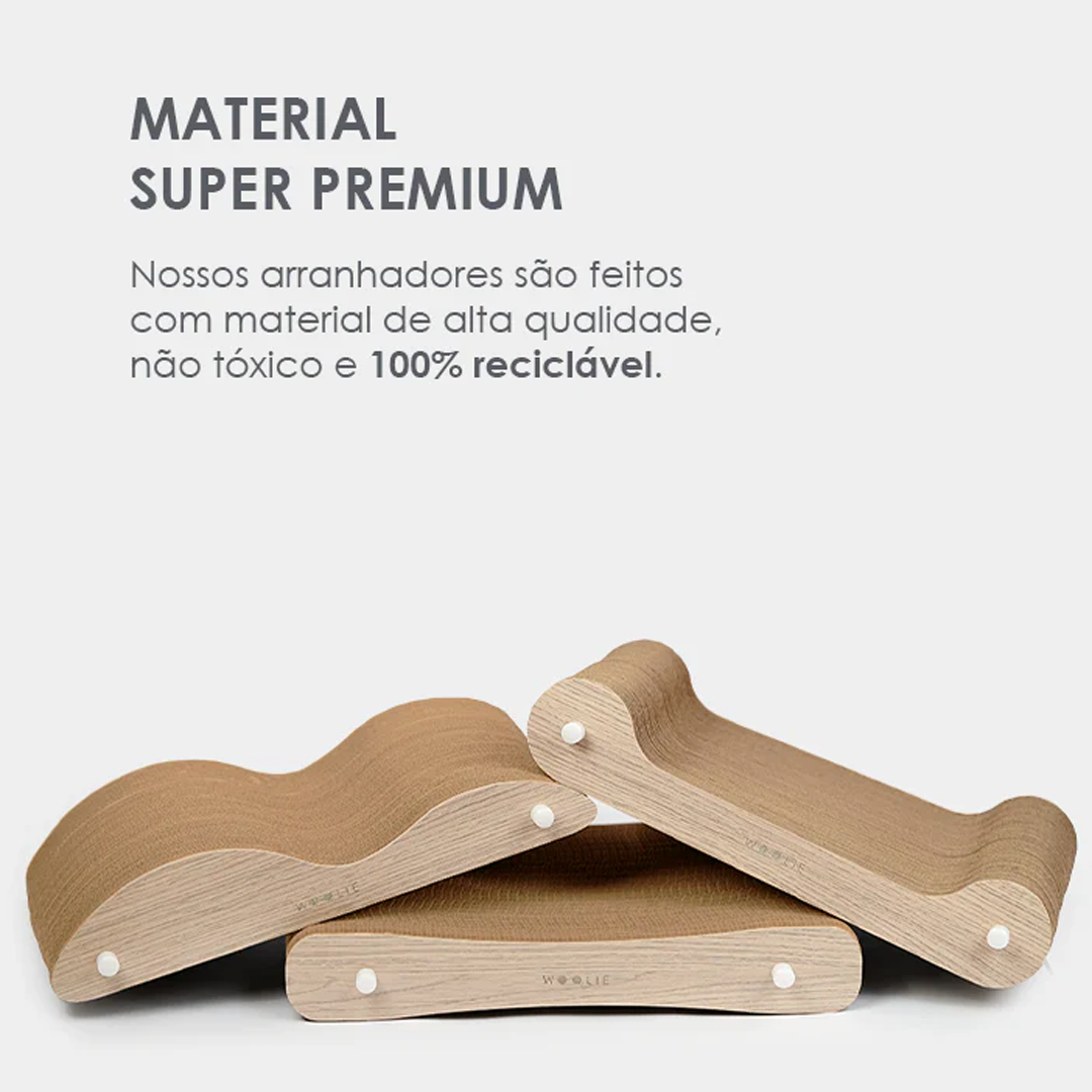 Arranhador para ajudar seu gatinho a desgastar as unhas, se alongar e se desestressar - além de proteger os seus moveis!Os dois lados podem ser usados como arranhador, trazendo maior durabilidade do produto.Lounge: além de arranhador, serve como uma caminha e um lindo lounge, amado pelos gatinhos.Material SUPER PREMIUM:- Papelão KRAFT, com qualidade e coloração diferenciada dos demais arranhadores.- Laterais em MDF: com cor e textura semelhantes às folhas naturais de madeira.- Sem cola entre as placas de papelão, reduzindo riscos de alergia.100% reciclável. Feito à mão, no Brasil.
