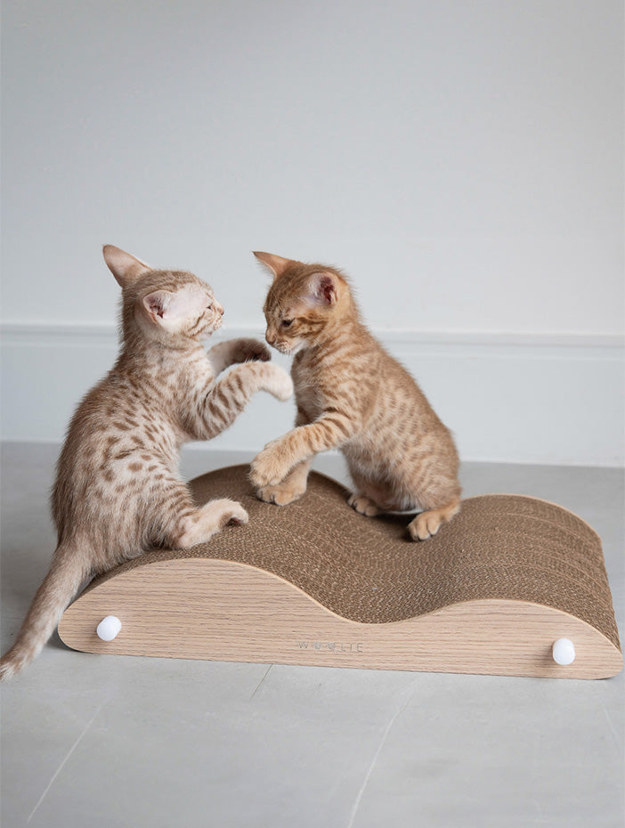 Arranhador para ajudar seu gatinho a desgastar as unhas, se alongar e se desestressar - além de proteger os seus moveis!Inspirado nas ondas, com design orgânico, especialmente desenvolvido para proporcionar novos ângulos e níveis que estimulem os seus gatinhos.Material SUPER PREMIUM:- Papelão KRAFT, com qualidade e coloração diferenciada dos demais arranhadores.- Laterais em MDF: com cor e textura semelhantes às folhas naturais de madeira.- Sem cola entre as placas de papelão, reduzindo riscos de alergia.100% reciclável. Feito à mão, no Brasil.