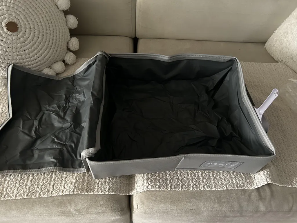 Ideal para todos os tipos de viagensO Toilet To GO é a solução ideal para quem gosta de viajar com o gatinho. Assim você não precisa levar uma bacia sanitária grande, pesada e desajeitada. Você pode usar e armazenar o banheiro de forma prática e inteligente.Portátil, prático e fácil de guardar.Uma palavra: Compacto! Pode ser facilmente armazenado em casa ou na mala. Quando aberto, possui capacidade para até 8kg de areia sanitária.Fácil de limparRevestido com tecido impermeável, facilitando a lavagem à mão e a manutenção, assim terá o seu Toilet sempre limpinho.