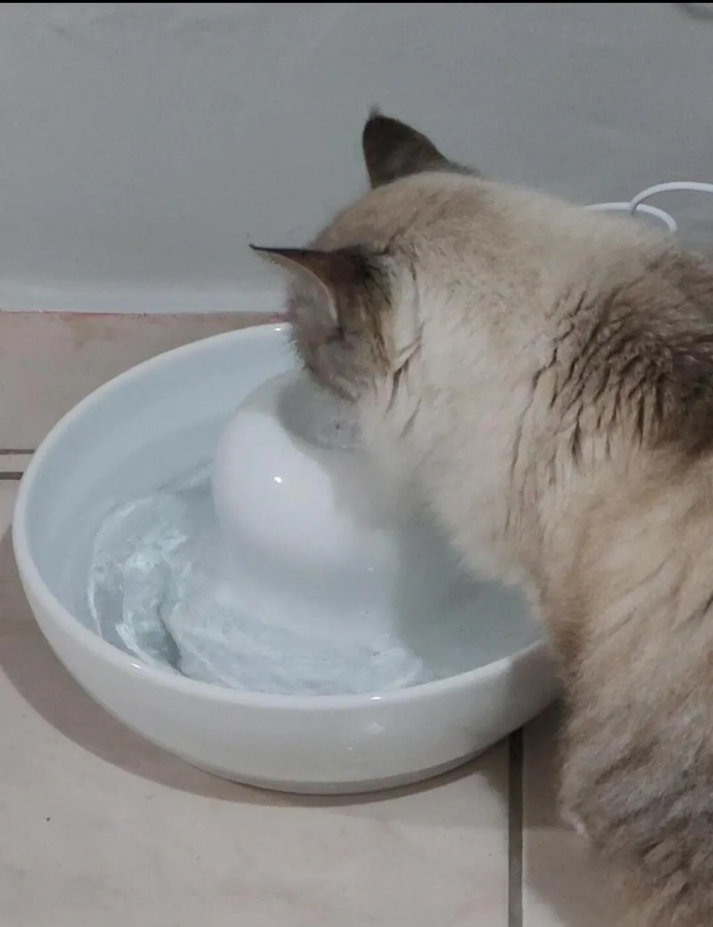 Amado por nós e pelos nossos humanos. Ficou bonito, a água é sempre fresca, não faz barulho então não nos assusta. Continuaremos pedindo pros humanos abrirem a torneira do banheiro, mas agora tem a fonte pra quando eles não estão em casa. Nota 11/10!