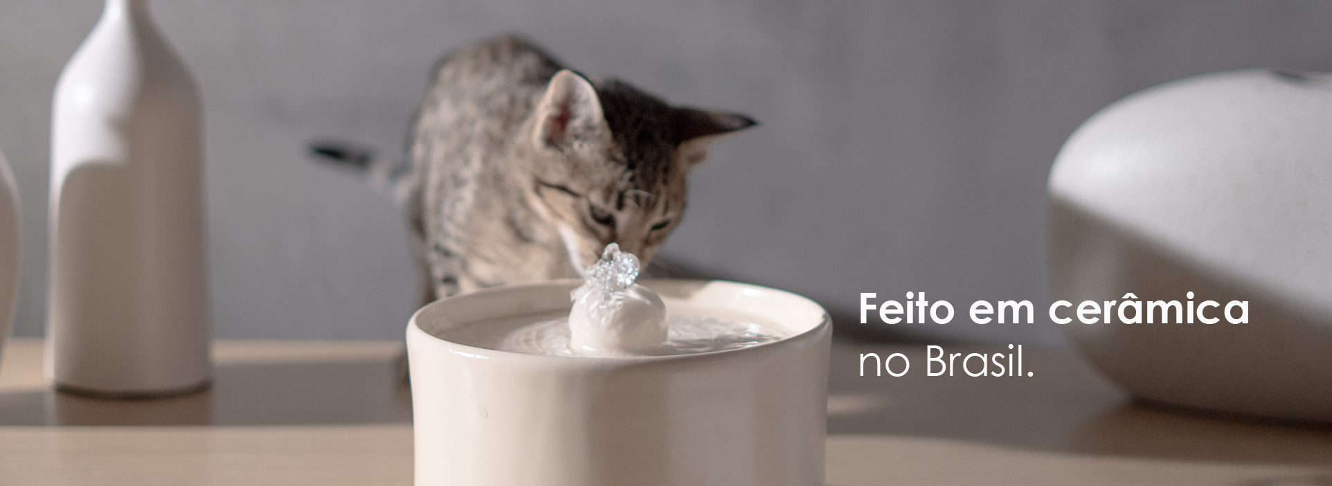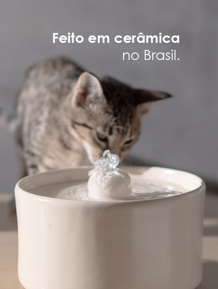 Peso: - Aproximadamente 1,3 kg Origem: Design, Estrutura em Cerâmica e Montagem: Brasil Peças internas (bomba, filtro e plugs): produzidas na China.