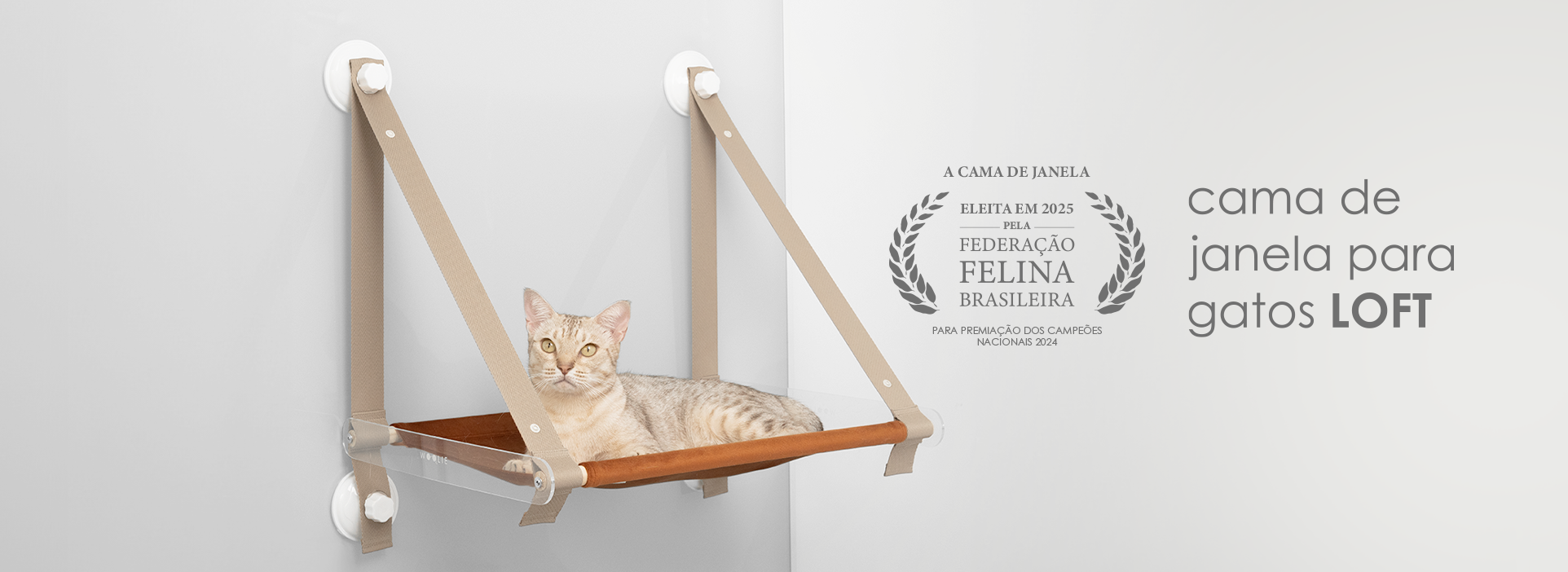 A cama de janela eleita pela Federação Felina Brasileira em 2025 para premiar os National Winners 2024.