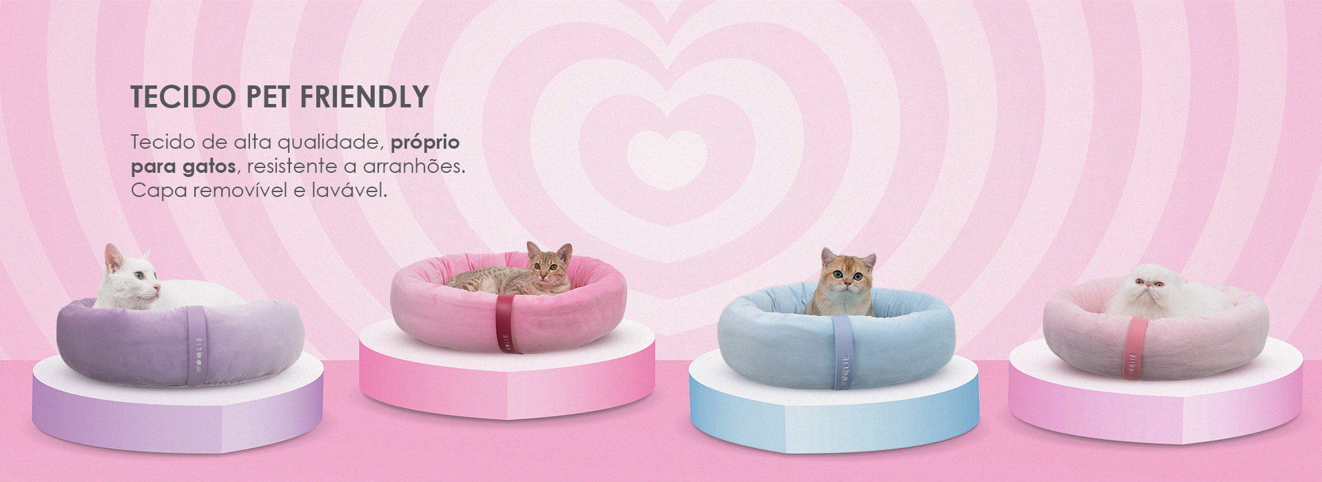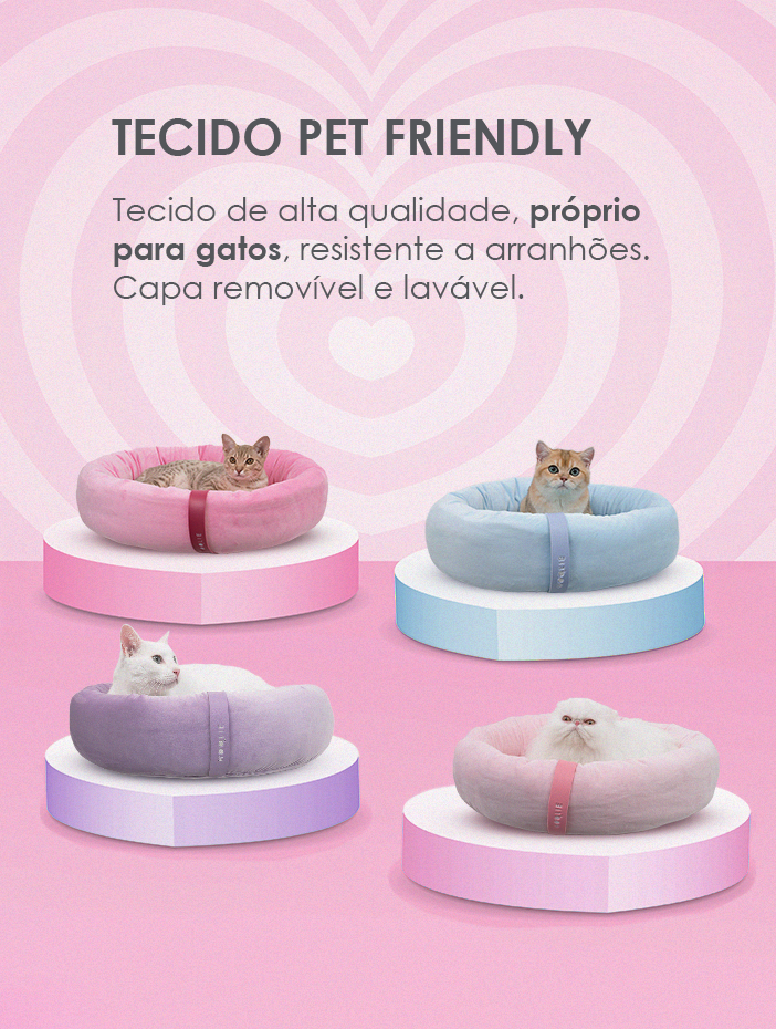 Coleção SmartBed: projetada para oferecer soluções seguras, práticas e inteligentes para os gatos e seus humanos.Utiliza tecnologias avançadas pensando na segurança, conforto e bem-estar dos gatos, com materiais de alta qualidade e próprio para felinos, impermeáveis, não prolifera fungos e bactérias, resistentes a arranhões, e atuam como barreiras térmicas, proporcionando a temperatura ideal para o felino.Com conforto e praticidade, as SmartBeds da Woolie são feitas em módulos que podem ser desmontados, facilitando a higiene e limpeza, ajudando assim a reduzir inclusive alergias dos tutores.E, para quem gosta de exclusividade, as SmartBeds possuem Bands (alças de couro sintético) com design único e que podem ser trocadas para combinar com o estilo de cada gateiro.Mais que lindas e com design exclusivo, as novas camas da Woolie são seguras, confortáveis, resistentes e fáceis de limpar.Tecido Pet Friendly + Espuma Patenteada + Anatomia = segurança, conforto e aquecimento. O formato da cama, em conjunto com o tecido e a espuma, atuam como isolante térmico ajudando a manter o gatinho mais quentinho.SmartBed Candy: Feita com tecido importado estilo teddy-bear, usado para bichos de pelúcia no Reino Unido, a Cama Candy é resistente, fácil de limpar e sedosa ao toque.