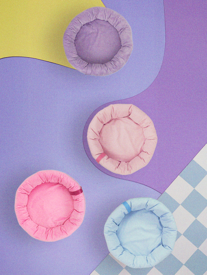 BANDS Alças de couro sintético, com design exclusivo e que podem ser trocadas. MEDIDAS APROXIMADAS - Diâmetro total: 50cm - Diâmetro interno: 38cm - Altura: 15cm Band: 37cm x 1,8cm Obs.: as camas da Edição Limitada Candy não vem com as cases de transporte.