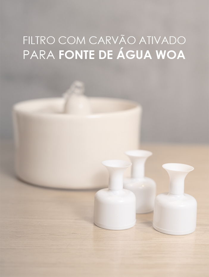 3 unidades completas do filtro (sistema de filtragem invertida*) para Fonte de Água WOA.*Sistema de filtragem invertida: pureza antes de tudoA tecnologia de filtragem invertida purifica a água antes de chegar à parte superior, onde os gatos bebem.O filtro combina:- Carvão ativado: elimina odores, sabores indesejados e resíduos de cloro.- Resina iônica: retém e neutraliza metais pesados, elevando a qualidade da água.O resultado é simples: água limpa, fresca e pura o dia todo.