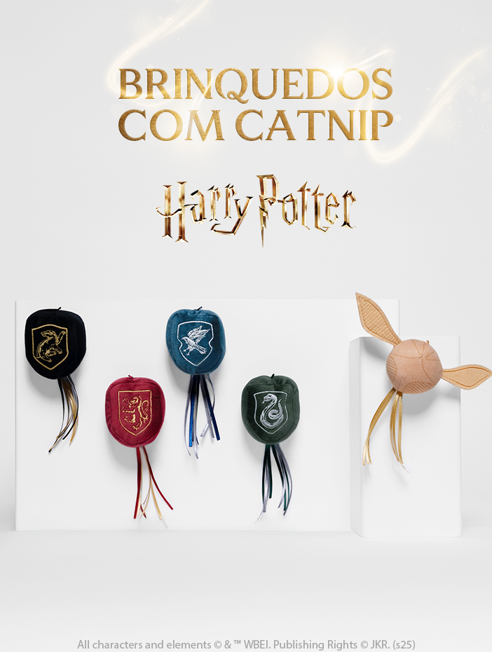 Coleção Harry Potter™: Nossa coleção exclusiva une o design funcional e sofisticado da Woolie com inspirações no mundo bruxo de Harry Potter. Cada detalhe foi cuidadosamente pensado para encantar fãs da saga e seus gatos, trazendo mais personalidade, conforto e imaginação para o dia a dia.Edição Limitada. All characters and elements ©️ & ™️ WBEI. Publishing Rights ©️ JKR. (s25)-----Brinquedo com Catnip para Gatos, desenvolvido para proporcionar uma experiência sensorial completa:• Textura de veludo com bordado, que atraí pelo toque delicado.• Aroma do catnip em folhas, irresistível para o olfato felino.• Sininho interno, divertido e encantador para os ouvidos.• Fitinhas em cetim com diferentes cores, visualmente atraente para os olhos curiosos.Ah, e ainda conta com:• Bolsinho* na parte de trás para adicionar mais ervas e manter o brinquedo sempre interessante e divertido.• Alcinha para poder pendurar o brinquedo em varinhas e cordinhas! * Pomo de ouro não vem com bolsinho atrás.Surpreenda seu felino com um brinquedo que vai estimular sua imaginação, seu instinto de caça e proporcionar momentos de interação especial entre vocês dois.