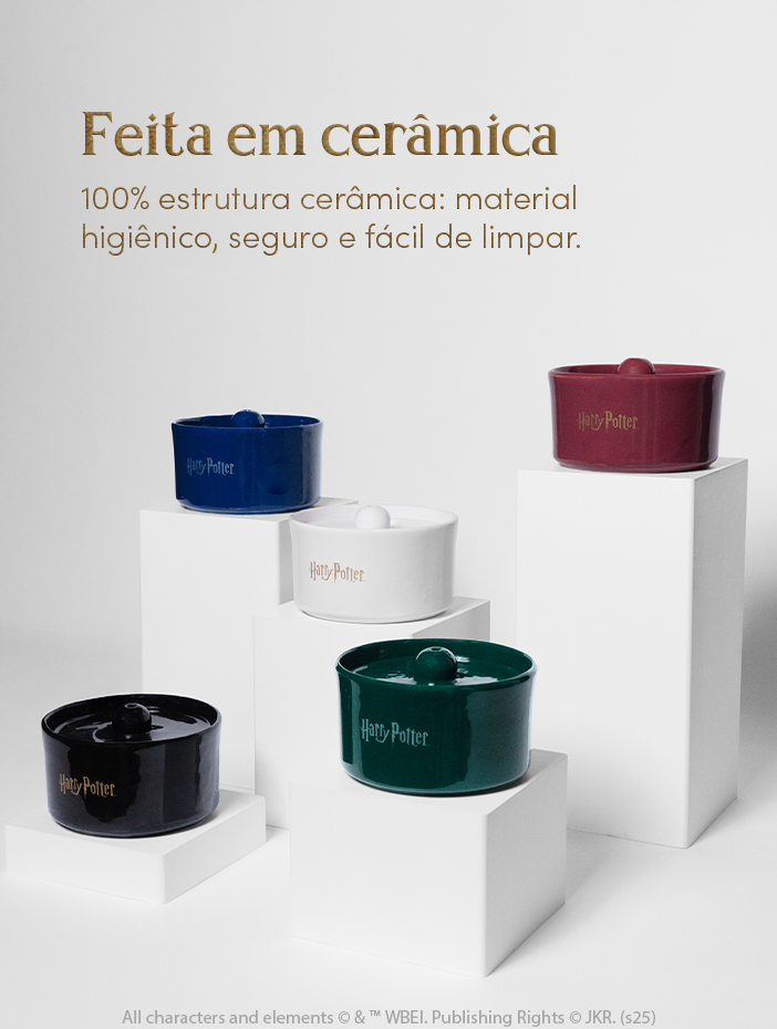 -----Caneca Caldeirão, com capacidade para até 550 ml, inspirada no ponto de partida das poções em Hogwarts: o caldeirão. Disponível em variações que combinam com os comedouros e bebedouros da nossa coleção.Feito à mão, no Brasil.Obs.: todas as fotos e vídeos da Coleção Harry Potter são reais, produzidos e editados profissionalmente pela Woolie, sem o uso de Inteligência Artificial (IA) ou renderização digital.