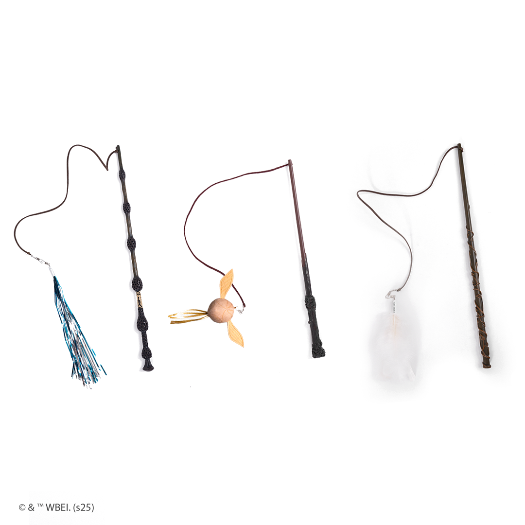 Transforme os momentos de brincadeira do seu gato com a Coleção de Varinhas Harry Potter. Inspiradas nos feitiços e aventuras mais icônicas do mundo bruxo, elas unem design criativo, movimento envolvente e muita diversão felina.A Varinha Hermione traz referência ao feitiço Leviosa, com penas presas a uma cordinha que se movem pelo ar e despertam a curiosidade e o instinto caçador do seu miaumigo.Já a Varinha Harry Potter traz um pomo de ouro que permite simular um jogo de quadribol em casa, transformando seu felino no mais ágil dos apanhadores.E, para completar, a Varinha Dumbledore, ou Varinha das Varinhas, traz uma ponteira com fios metalizados que refletem brilhos azuis e prateados, lembrando o feitiço usado para guardar memórias na penseira — uma experiência visual única que cria momentos inesquecíveis entre você e seu gato.Mais do que brinquedos, essas varinhas são convites para viver a magia lado a lado com seu felino, fortalecendo laços e tornando cada interação especial.-----Coleção Harry Potter™:Nossa coleção exclusiva une o design funcional e sofisticado da Woolie com inspirações no mundo bruxo de Harry Potter. Cada detalhe foi cuidadosamente pensado para encantar fãs da saga e seus gatos, trazendo mais personalidade, conforto e imaginação para o dia a dia.Edição Limitada.All characters and elements ©️ & ™️ WBEI. Publishing Rights ©️ JKR. (s25)----- Obs.: todas as fotos e vídeos da Coleção Harry Potter são reais, produzidos e editados profissionalmente pela Woolie, sem o uso de Inteligência Artificial (IA) ou renderização digital.