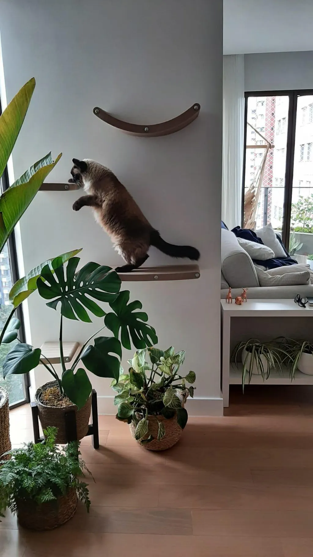 As prateleiras "Sky Walk" são módulos escaláveis para permitem ampliar a área de circulação dos gatinhos dentro de sua casa!Com material resistente formado por camadas de feltro importado desenvolvido especialmente para a Woolie, os nichos possibilitam que os gatos exercitem seus instintos, como pular, arranhar, brincar, espreguiçar e tirar aquela soneca!Além do design exclusivo para decorar sua casa, as prateleiras foram desenvolvidas com camadas de feltro, um material que ajuda a manter a temperatura, super resistente e que os gatos A-M-A-M-!!!!Com fixação invisível e finalizada à mão, as prateleiras "Sky Walk" da Woolie vão tornar a sua casa mais gatificada e elegante!
