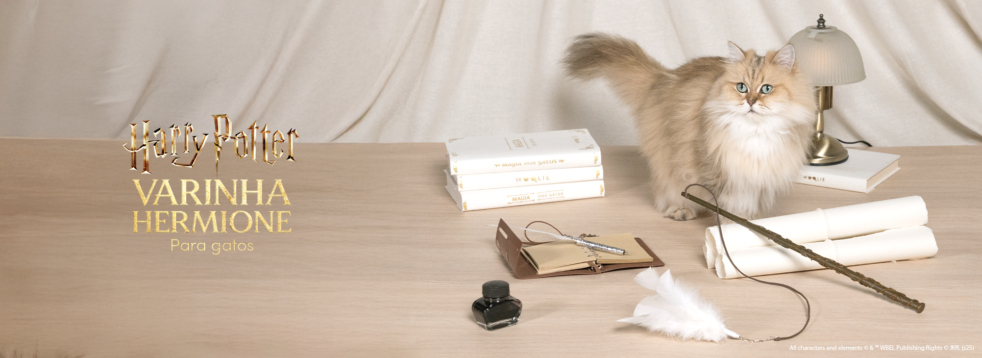 Transforme os momentos de brincadeira do seu gato com a Coleção de Varinhas Harry Potter. Inspiradas nos feitiços e aventuras mais icônicas do mundo bruxo, elas unem design criativo, movimento envolvente e muita diversão felina.A Varinha Hermione traz referência ao feitiço Leviosa, com penas presas a uma cordinha que se movem pelo ar e despertam a curiosidade e o instinto caçador do seu miaumigo.Mais do que brinquedos, essas varinhas são convites para viver a magia lado a lado com seu felino, fortalecendo laços e tornando cada interação especial.-----Coleção Harry Potter™:Nossa coleção exclusiva une o design funcional e sofisticado da Woolie com inspirações no mundo bruxo de Harry Potter. Cada detalhe foi cuidadosamente pensado para encantar fãs da saga e seus gatos, trazendo mais personalidade, conforto e imaginação para o dia a dia.Edição Limitada.All characters and elements ©️ & ™️ WBEI. Publishing Rights ©️ JKR. (s25)----- Obs.: todas as fotos e vídeos da Coleção Harry Potter são reais, produzidos e editados profissionalmente pela Woolie, sem o uso de Inteligência Artificial (IA) ou renderização digital.